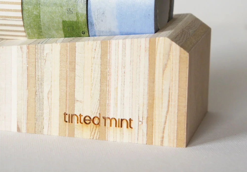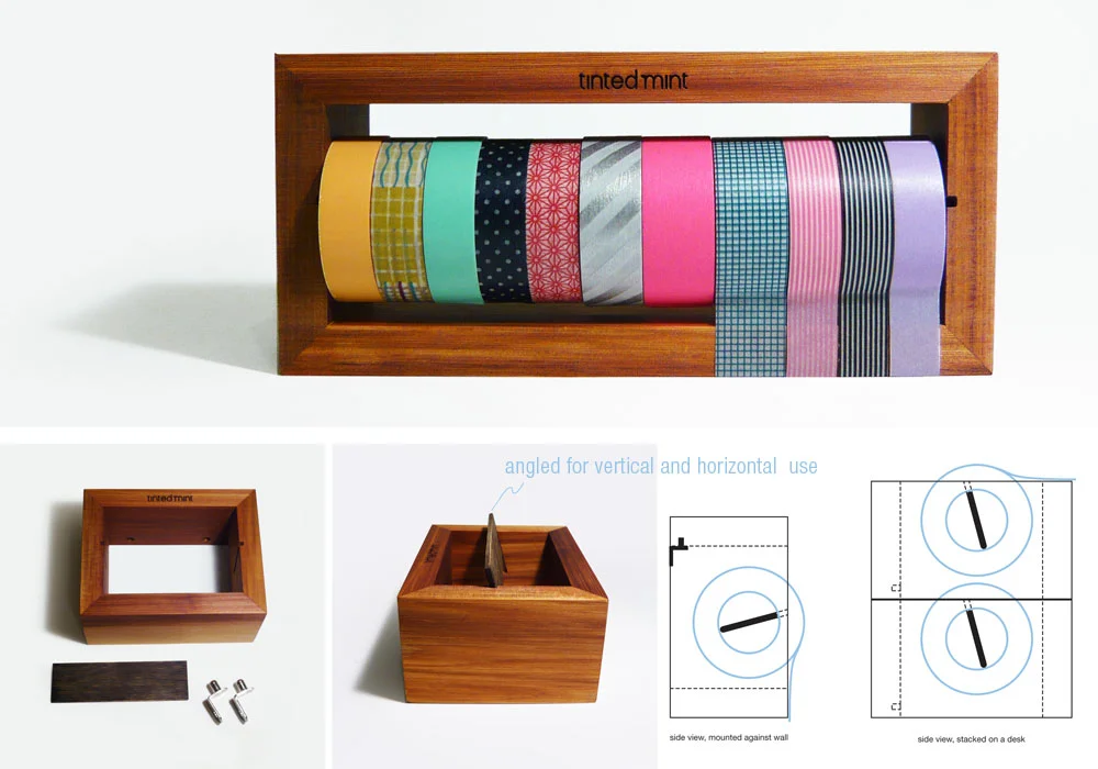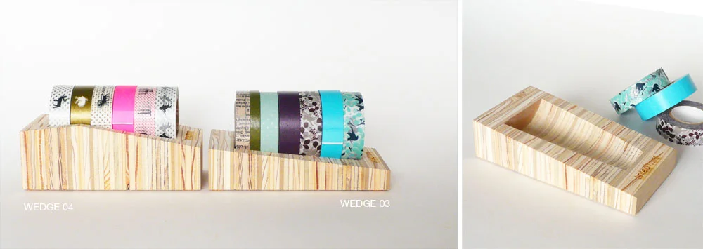Main products sold were Japanese washi tapes. These two tape dispensers are made of reclaimed woods and are meant to be a functional and decorative desk top item.